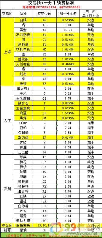 螺纹钢交易所收费是1%%,那最低的螺纹钢手续费加1分就是1.01%%,这个收费是全国最低的。除了螺纹钢,其他品种最低手续费又是如何呢,可以观看图片,图片中将每个品种的详细情况都罗列出来了99xinxi.net。