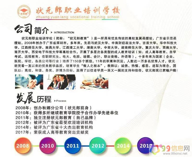 【国家正规学历提升机构】:状元郎教育是一所具有优良传统的高校直属函授站,广东省示范函授站,来自www.99xinxi.net1992年创办于广东省深圳市。
