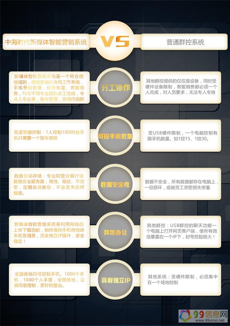 中海时代威信群控系统致力于打造实用的群控云控系统99xinxi.net。安全、批量、高效、稳定、实用是中海时代群控的核心理念。
