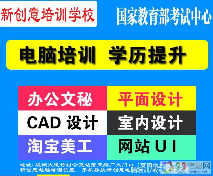 电脑培训:办公文秘班、计算机考证班、CDR平面设计班、PS图像处理班、3DMAX室内设计班9~9~x~i~n~x~i~n~e~t。(所有课程O基础随到随学,小班面授课,学会为止)