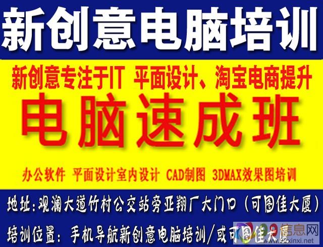 新创意培训地址:观澜大道竹村公交站旁亚翔厂大门口(可图佳大厦三楼)