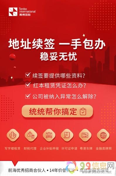 3、前海地址续签中填报信息多而具体www.99xinxi.net99信息网。新系统上线,新增很多填报信息,需企业及时准确填报相关信息。
