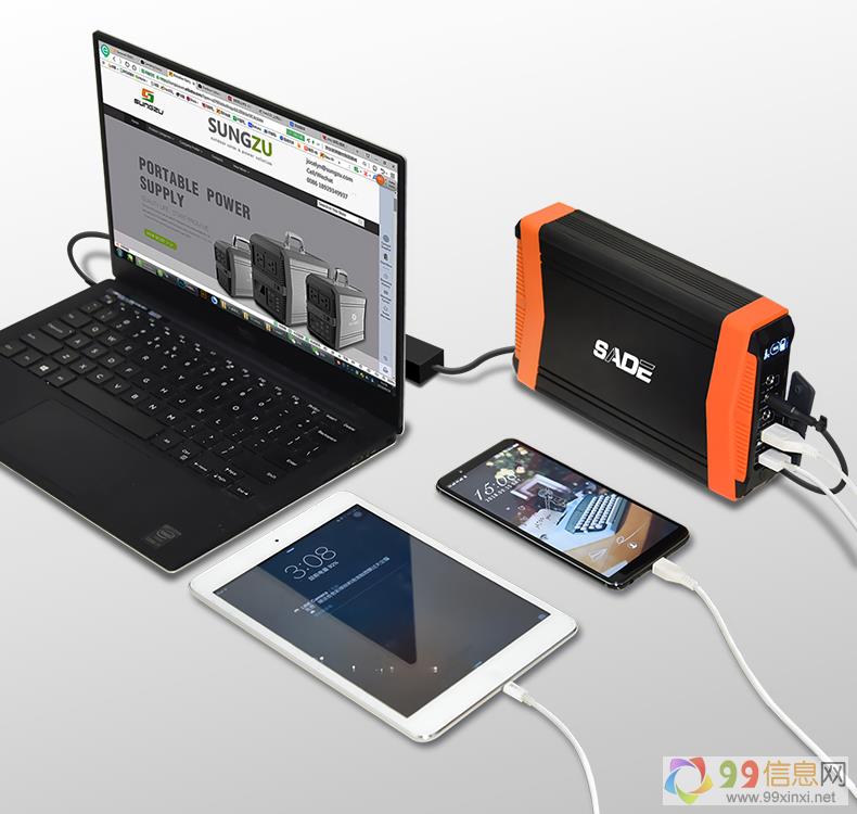 SADE户外电源研发了许多不同型号,不同的系列,就是为了能满足不同人群的需求。今天小编就来讲讲其中一款SKD200移动电源,这款是所有系列最特别的一款,为什么这样说呢,因为这款的话主打DC插口,适合用于一些笔记本电脑、12V的一些www.99xinxi.netLED照明灯供电、为无人机供电、为车载设备供电、为手机供电,为I Pad供电等等......9.9.信.息.网
