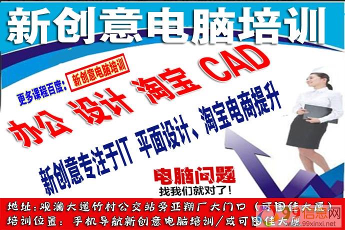 淘宝网店培训课程、网页设计培训课程、淘宝美工培训课程、平面设计培训课程、室内家装设计培训课程、电脑基础办公自动化培训课程等99信息网。