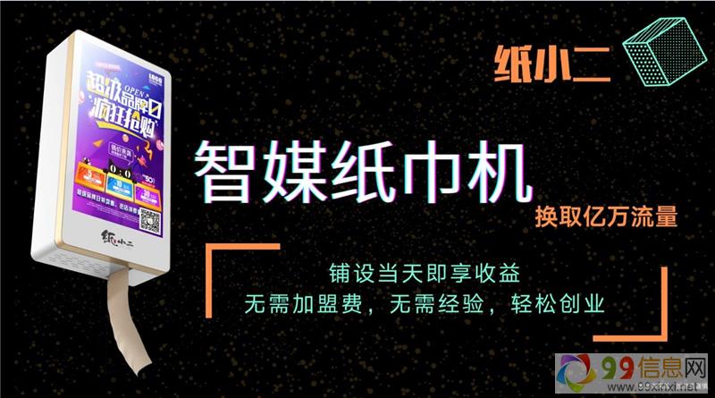 纸小二智媒纸巾机,是自带高效流量入口和媒介传播的免费公共服务项目。...