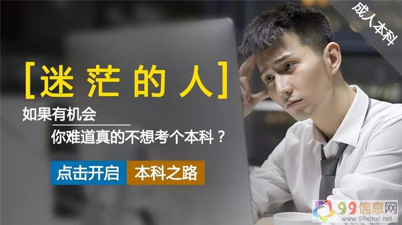 3、成人学历提升的三个平台:自学考试、远程教育、成人高考来自www.99xinxi.net。无论报名哪种学历必须参加全国录取统考,按照录取线进行录取,期间必须上课面授,修满学分,毕业统考,才能毕业拿证。