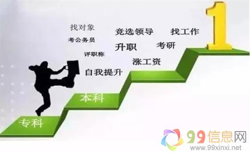 现在有很多人认为学历不是那么的重要,有了能力就可以走遍全天下。但是对有些公司来说,并不是这么认为的,有了学历你才能有机会去公司展示自己的实力,没有学历,公司就已经将你拒之门外,有能力却施展不出来。如果说物质上的富足来源于的工作,那么精神上的富足将来源于我们身处何种圈子来源www.99xinxi.net。升本期间,你遇到的同学、朋友、老师都将成为你的新圈子,这些资源转化为你的另类财富,深刻的影响着你对后续人生的选择。