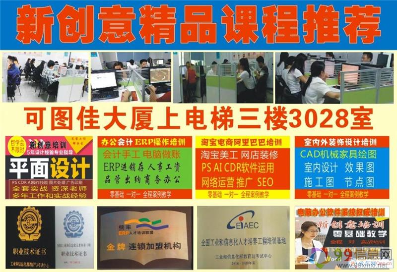 新创意培训地址:观澜大道竹村公交站(亚翔厂旁)可图佳大厦三楼、新创意电脑培训位置:手机导航新创意电脑培训/或可图佳大厦
