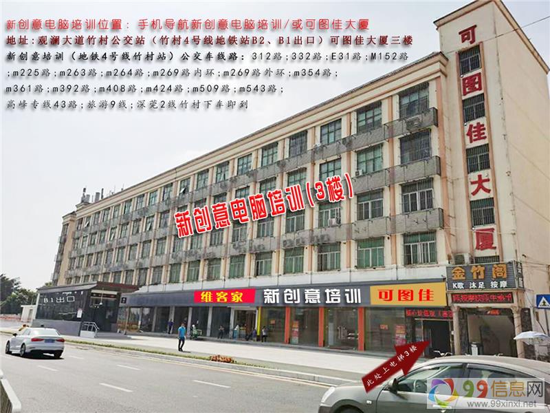 新创意培训地址:观澜大道竹村公交站(竹村4号线地铁站B2、B1出口)可图佳大厦三楼